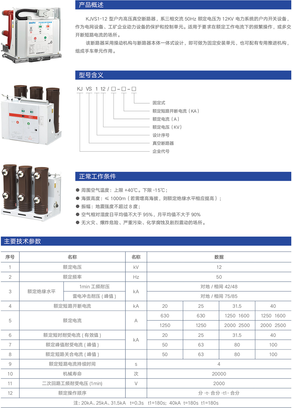 KJVS1-12 戶內高壓斷路器系列